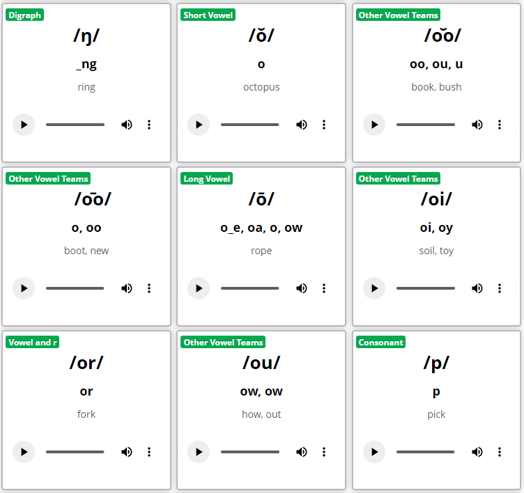 If you’ve ever had questions about how certain phonics sounds should be pronounced, our Audio Examples of Phonics Sounds page is your new best friend. This page includes an audio demo of the phonics sounds and patterns you and your students will come across in phonics instruction and assessment. It’s also a handy guide to interpreting those breves (˘), and macrons (−). Because let’s face it, even the phonics experts have a hard time keeping those things straight! Just click the play button next to each letter/pattern, and you’ll hear the correct pronunciation.