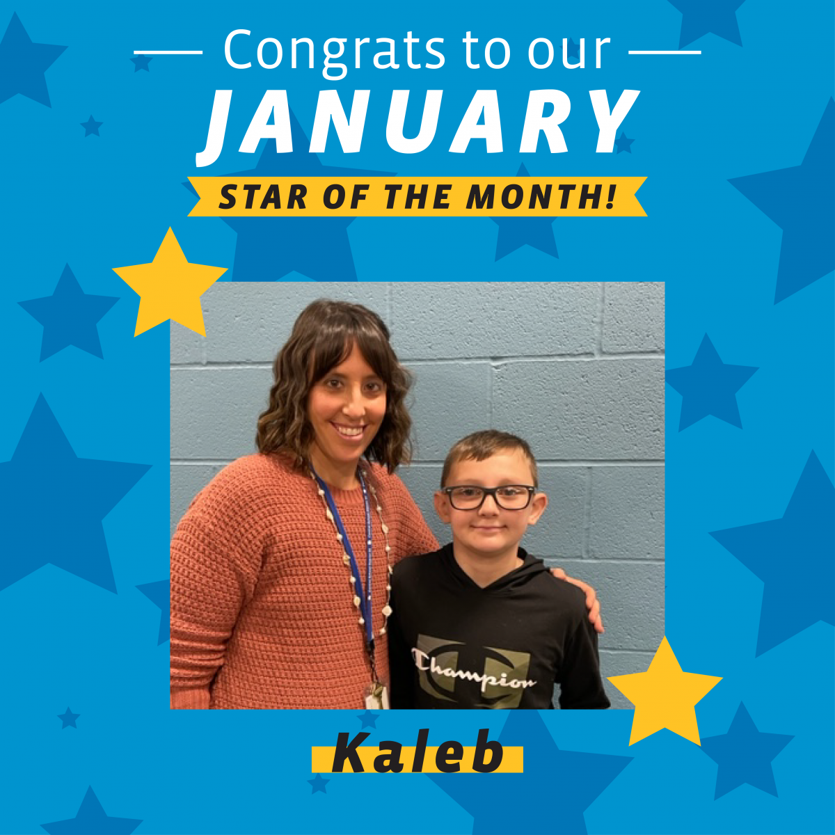 Congrats to our January Star of the Month, Kaleb, who has made great progress in reading this year! Kaleb is a fourth grader at Central Intermediate School in Washington, IL. Here is what Kaleb's teacher, Ms. Perko, has to say about him: