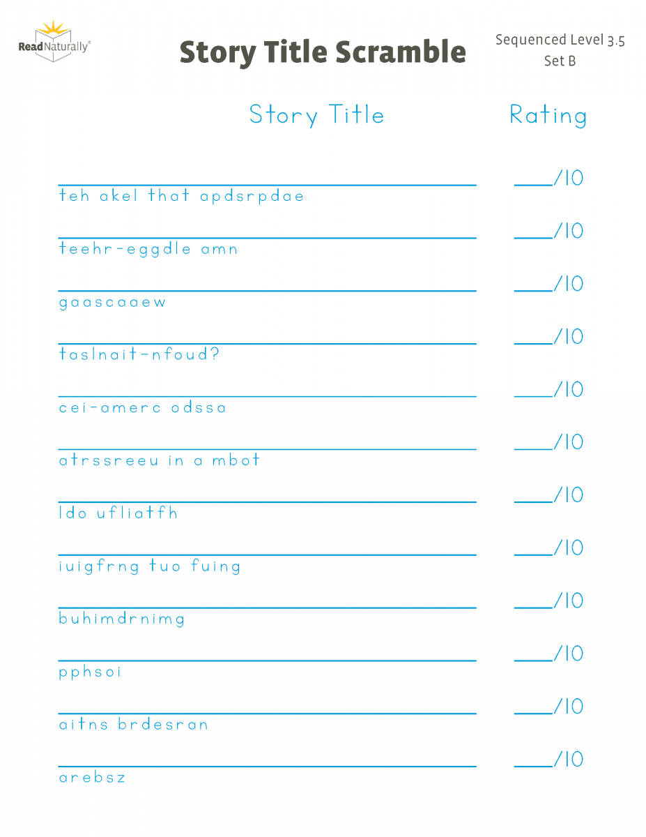 As a reward for completing a level (or a set of 12 stories), students can unscramble the titles of the stories they just completed. Students may also rate the stories according to their enjoyment or how much they learned.
