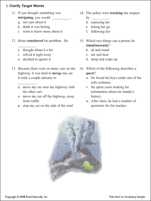 Students answer vocabulary questions about the words.