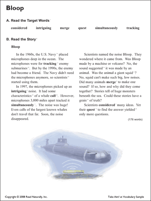 Students are introduced to the six target words in the lesson. Students complete sections A–F, H, and J with teacher direction or with audio support.