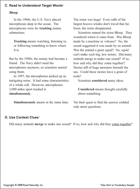 This mini-lesson points out the context clues around a target word and helps students use these clues to infer the word’s meaning.