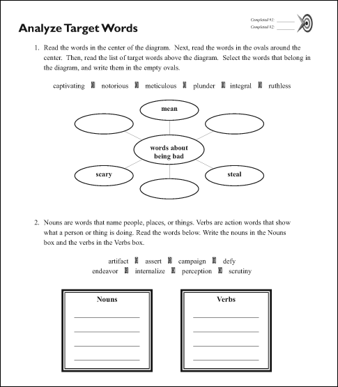 The semantic mapping activities in this section teach students to associate new words with familiar words and develop knowledge of parts of speech.