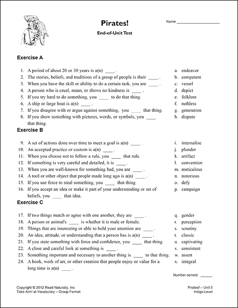 After completing all four lessons, the students take the end-of-unit test and record their scores.